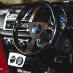 在外形上,这辆小红 Vios 非常低调,没有加装任何的 Body Kit,也没有夸张的尾翼,只更换了 Rays 的 TE37 15寸运动轮圈+ Kumho V720 性能轮胎而已,就连刹车系统都只是升级了刹车皮罢了,真的是很低调!不过到了内装就暴露了本性,打开车门,第一眼就是被超帅气的序列式排挡杆夺走,同时车主也更换了三幅式的运动方向盘来增加运动气息,至于的配备有设计则是保持全原装。