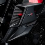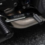 外观设计,Brabus 为它导入了大量 Carbon Fiber 碳钎维材质,并采用 Brabus 设计的空力套件,侧向导流口、大灯罩、后座座盖以及导流板等都采用了 Carbon Fiber 碳纤维材质,因此其车重只有 194KG,轮圈部分是Brabus Monoblock Z 17 寸 Light Wheel 轻量化锻造轮圈,搭配 Bridgestone S22 Battlax 性能轮胎,搭配 Brembo Stylema 四活塞刹车卡钳,后刹则是 Brembo 双活塞刹车卡钳,并且还导入了单边双出 Brabus 定制排气管,还刻上 “Brabus 1300 R” 的字样,整体非常霸气 + 凶猛!