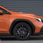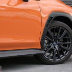 车侧方面可以看到 Subaru 刻意为 2022 WRX 撞上了黑色防刮材质的翼子板,营造出一些 Widebody 宽体的视觉感,同时也造就了 Dual Tone 双色车身的理念,提升了一些运动气息,而轮圈方面也是新设计,采用暗灰色漆面 + 多辐式设计,可惜轮胎里头依旧没有升级成“鲍鱼”多活塞刹车卡钳,要到 WRX STI 车型上才会看到。。