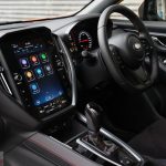 打开车门,映入眼帘的是更加科技感的内装,2022 WRX 严苛来说没有很大的升级,Subaru 保留了旧设计的多功能方向盘,旧设计的多功能仪表,但更换了与 2021 Levorg 一样的全新直列式 11.6寸超大娱乐主机,而这主机除了可支援 Carplay 与娱乐操控以外,还取代了冷气操控面板,你只需透过这个 Screen 就可调整冷气,所以完美让中控台变得更加整洁与科技感!