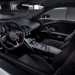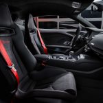打开车门,R8 GT 的内装超级战斗,拥有大尺寸全液晶仪表,Audi Sport 多功能方向盘(带有操控按钮,包括驾驶模式切换 / 排气阀门 / 引擎启动 / 电子辅助系统控制),Audi Sport 赛车座椅,Carbon Fiber 碳纤维中控台,电子排挡杆,以及数位化冷气显示等等,整个内装质感很好,也很运动。