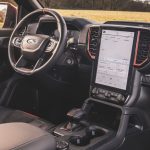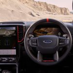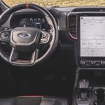 打开车门,内饰和普通版的 Ranger 没有太大的不同,12.4 寸全液晶仪表,Ford SYNC4 12 寸直列式触屏娱乐主机,电子排挡杆,EPB 电子手刹,真皮电动座椅等等配备都有在这款车上出现,同时在音响系统上,Ford 为其升级成 Bang&Olufsen 音响,整体质感进步了超级多,比起上一代的 Ranger Raptor 专注于越野能力,新一代车型更符合家用车的实用性。