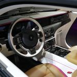 Spectre 的内装导入了星光饰板 (Illuminated Fascia) ,延续着空灵的夜空主题,在星光饰板上,超过 5500 颗“星星”围绕着“Spectre”字标熠熠生辉。除此之外,Spectre 是 Rolls-Royce 首款配备星光车门(Starlight Doors)的量产车型,该设计以 4796 颗柔和光点营造出璀璨星空,其车门可定制 Canadel 木质镶板作为背板,整个视觉效果非常梦幻。