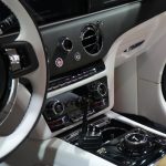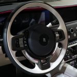 来到 Driving Side 部分,Spectre 拥有一块由液晶仪表盘与中控多媒体显示屏相连接所组成的双联屏,不过该屏幕是整个内嵌在中控台上的,并非采用类似幻影的悬浮式设计。此外,Spectre 还配备了三辐式的多功能方向盘,中控台上依旧配有 Rolls-Royce 经典的圆形镀铬空调出风口,下方还保留了两个旋钮式的物理按键。