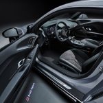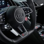 外形与内装部分,R8 的设计相信大家都不陌生,非常低趴 + 超跑风格,拥有 Matrix LED 头尾灯组,巨大的进气口,20寸/21寸锻造轻量化轮圈,大尾翼等等,颜值相当高。打开车门,R8 的内装偏向简约风格,拥有 Audi Virtual Cockpit 全液晶仪表,Audi Sport 多功能方向盘,数位化冷气操控面板,Audi Sport 赛车座椅,电子排挡杆,以及大量的 Carbon Fiber 碳纤维 + Alcantara 材质,无论是外形还是内装,战斗气息都十足。