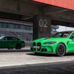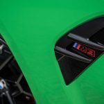 外形部分,M3 CS 换上了更多 Carbon Fiber 碳纤维套件,包括前唇,侧裙,扰流板,尾翼以及饰板等等,同时其引擎盖多了通风口,Laser Light 镭射头灯进行了熏黑处理,并且 M3 CS 拥有独有的绿色车漆,非常张扬 + 夺目!轮圈也有升级,采用 BMW 锻造轻量化轮圈,匹配 Michelin Pilot Sport CUP2 性能轮胎,前轮尺寸 275/35R19,后轮则是 285/30R20,比普通的 M3 还宽。