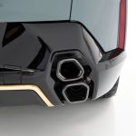 外形部分,2023 BMW XM 采用了非常大胆的设计风格,车头拥有巨大的双肾中网(带有 LED 光条),Laser Light 镭射头灯,以及设计很夸张的前保险杠,轮圈是 23 寸的配置,匹配的轮胎尺寸为前 275 / 后 315,里头的刹车是 BMW 大鲍鱼(6活塞卡钳),性能不用担心。车尾就很科幻,与 iX 有点相似,扁平锐利的 LED 熏黑尾灯,直列式双边双出排气管,以及很运动的后扰流板。