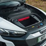 打开无框车门,e-tron GT 采用了最新的 Audi 家族设计风格,导入了12.3寸 Audi Virtual Cockpit 全液晶仪表以及 Audi MMI 多媒体娱乐主机,而电子排挡杆,RS 方向盘,RS 运动真皮电动记忆座椅,气氛氛围灯,Bang & Olufsen 高级音响以及质感非常好的中控台设计都没有缺席!值得一提的是 e-tron GT 的内装是采用了 Carbon Fiber 以及 Alcantara 材质混搭而成,因此内装的战斗气息十足,逼格满满!