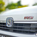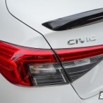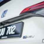 来到外形方面,Civic e:HEV 是属于 RS 顶配车型,所以它与 Civic Turbo RS 几乎一模一样,不过为了强调其 e:HEV 的身份,Honda 为它换上了蓝色黑底的 Logo 徽章,车尾贴上了 e:HEV 的字样,外形也多了不少 Chrome 镀铬饰条做点缀,轮圈虽然是 18 寸,也是 Michelin Pilot Sport 4 性能轮胎,尺寸 235/40R18,但其设计与 Turbo 不同,它是 Dual Tone 双色风格,与 Civic Turbo RS 的哑光黑轮圈相比,Civic e:HEV RS 的轮圈看起来更加优雅贵气。