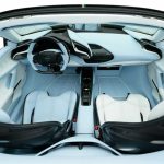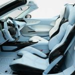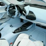 打开车门,Mansory 已经将 SF90 Spider 换上了白 + Tiffany Blue 湖蓝的内装配色,看起来非常高级,层次感十足,像是 F1 风格方向盘,Paddle 踏板,门板,Carpet 地毯以及 Carbon Seat 赛车座椅上也换上了 Mansory 的专属徽章,时刻提醒别人这是由 Mansory 爆改的 Ferrari!