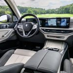 打开车门,2023 BMW X7 的内装也是采用了 BMW 最新的设计风格,与 BMW iX 相同,拥有贯穿式的双联屏,分别为 12.3寸的全液晶仪表 + 14.9寸的超大 iDrive8.0 娱乐主机,方向盘也是新设计,而像是精致的中控台,娇小的水晶电子排挡杆,水晶 iDrive 旋钮,气氛氛围灯,Bowers&Wilkins 高级音响,真皮电动座椅,全景天窗以及后座独立式 iDrive 娱乐面板等等都没有缺席,内装质感超好,科技感十足,也很运动!值得一提的是我国的 X7 是 6 人座版本,空间运用更好。