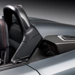 当然,轮圈依旧是 Porsche 招牌的 Forged 锻造单锁轮圈,匹配 Michelin Pilot Sport Cup2 半热熔胎,里头的刹车时 Carbon Ceramic 碳陶瓷刹车碟盘 + Porsche 多活塞高性能刹车卡钳,刹车能力不用质疑。此外, 718 Spyder RS 采用超硬派的悬吊设定,匹配全车的强化拉杆 + 运动套件,在操控与驾驶乐趣完全是最佳状态!
