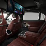 重点是 7 Series 的后座,作为一辆老板车,2023 BMW 7 Series 的后座左右两侧拥有独立式的触屏操控面板,可自由调整座椅角度,按摩功能,冷气温度/风量,音乐以及查看车况等等,而后排上方还有电动的 31.3寸 8K 全液晶屏幕,你看看戏,玩游戏都可以!这内装,这后座完全吊打同级对手!