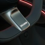 打开车门,Smart #3 Brabus 采用了类似 Smart #1 的设计风格,具备 12.8 寸的娱乐主机(搭载 Snapdragon 8155 车芯片),多功能方向盘,9.2 寸全液晶仪表,10寸 HUD 彩色抬头显示器,Beats 高级音响以及 64 色氛围灯等等,整个内装非常简约,质感很好很高级,内装科技感十足!毕竟是 Brabus 性能版,所以导入了红色线条点缀,红色安全带,运动座椅,以及 Brabus 徽章,证明它的身份不简单,同时视觉感看起来更加战斗 + 热血!