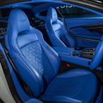 内装部分,Vanquish 用上了最新的设计,拥有 10.25 寸全液晶仪表 + 10.25寸娱乐主机,匹配 Bowers&Wilkins 高级音响,也有氛围灯 + 全景天窗(需要分配,你也可以选配 Carbon 碳纤维车顶),精致的电子排挡杆,中控按钮,以及 Sport Seat 电子运动座椅。