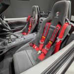 此外,毕竟是 Mazda Spirit Racing 性能团队的作品,MX-5 12R 也有许多独有的匹配,比如 Aero Gray 车漆,TE37 锻造轻量化轮圈(匹配 Yokohoma AD09 性能轮胎),Brembo 高性能刹车系统,Bilstein 可调式的运动悬吊,后尾翼,以及 Fujitsubo 运动排气等等。基本上所有“好料”都装上车就对了。就连内装也有大辆 Alcantara 材质点缀,而且椅子也升级成 Recaro 运动座椅 + Sabelt 4Point 赛车安全带。