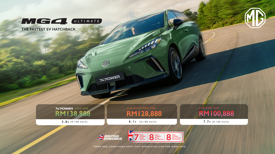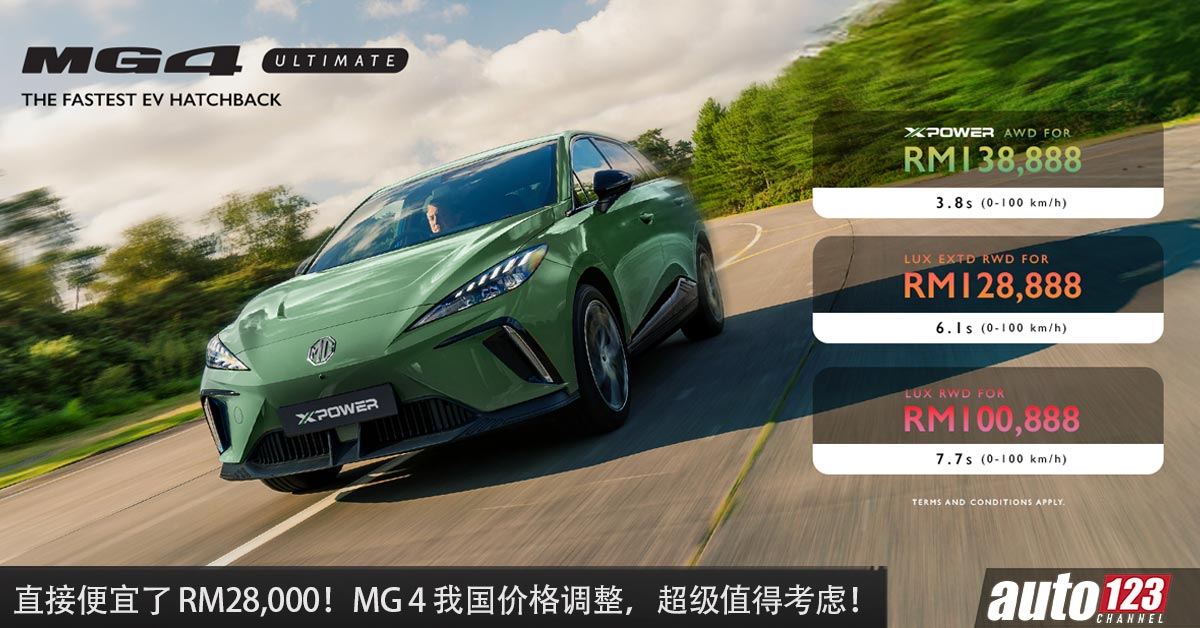 降价 RM28,000!MG4 我国新车价调整,仅从 RM100,888 起,最强的 XPower 只要 RM138,888!