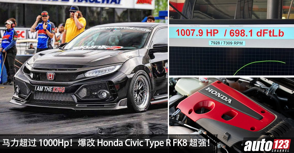 马力超过 1000Hp 的 Honda Civic Type R FK8!2.0L Turbo 引擎,0-100KM/H 不到 2 秒!