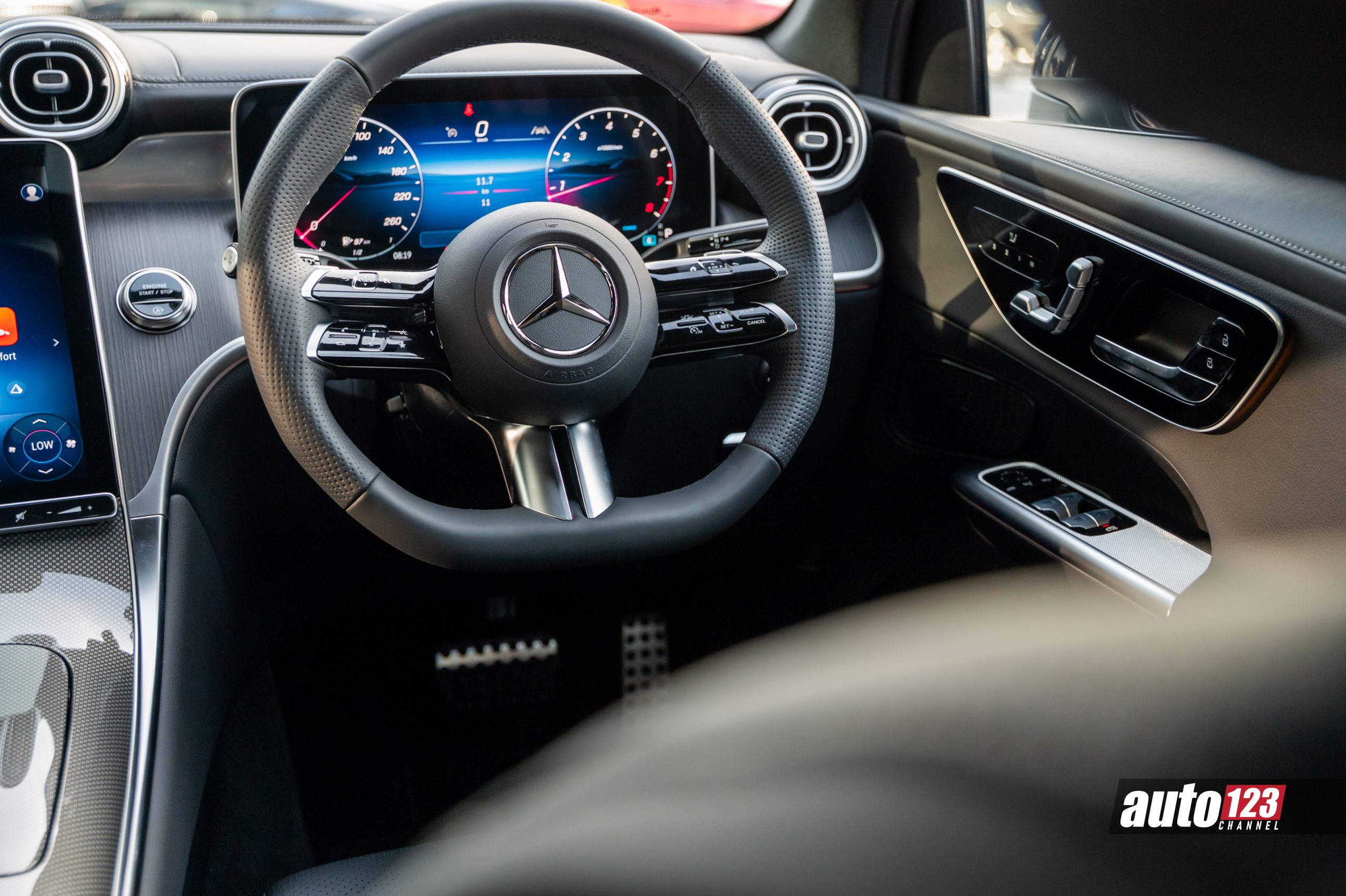 座舱设计:AMG Line 内装,Artico 人造皮座椅,前排座椅带加热、电动调节与记忆功能,方向盘采用 Nappa 皮革包裹。