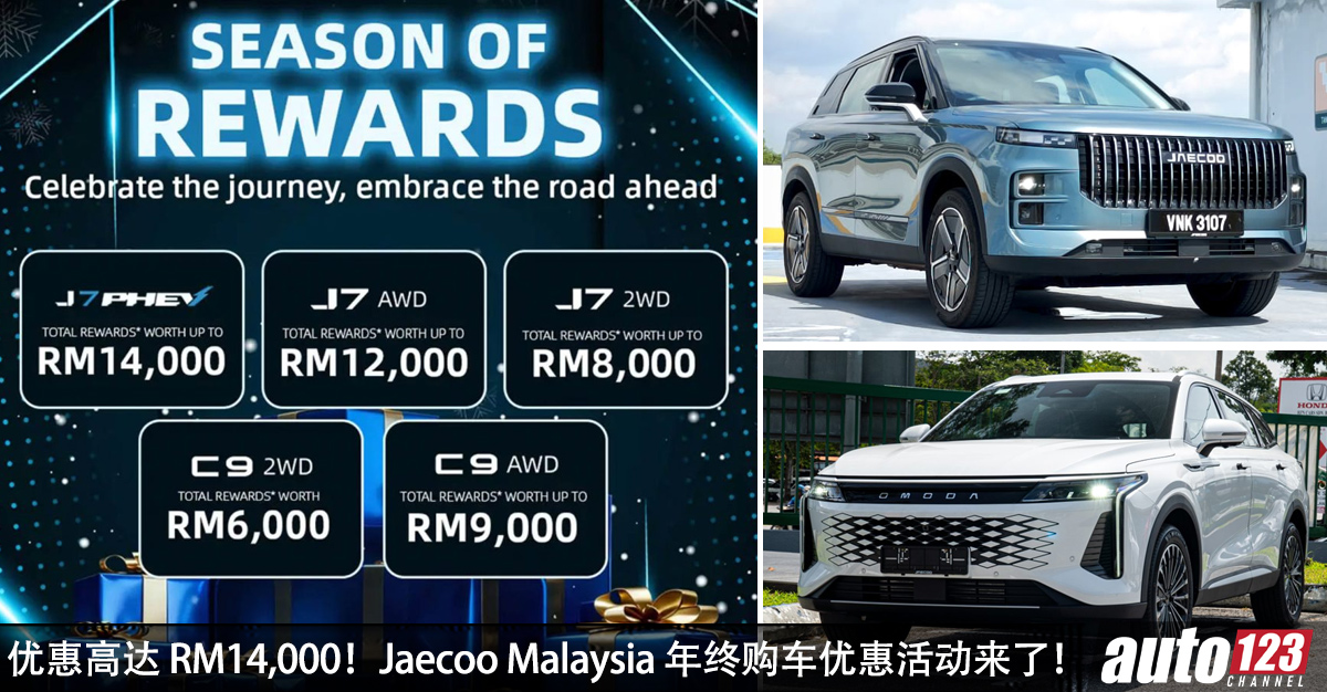 随着年末临近,Jaecoo Malaysia 推出全新 “Season of Rewards” 年终购车优惠活动,旗下的 J7 车系和 Omoda C9 车系都有一定的优惠!你也可根据需求灵活选择 Offer Package,比如:免费服务与保养、利率优惠、现金折扣及 Wallbox 充电器,总价值最高可达 RM14,000!