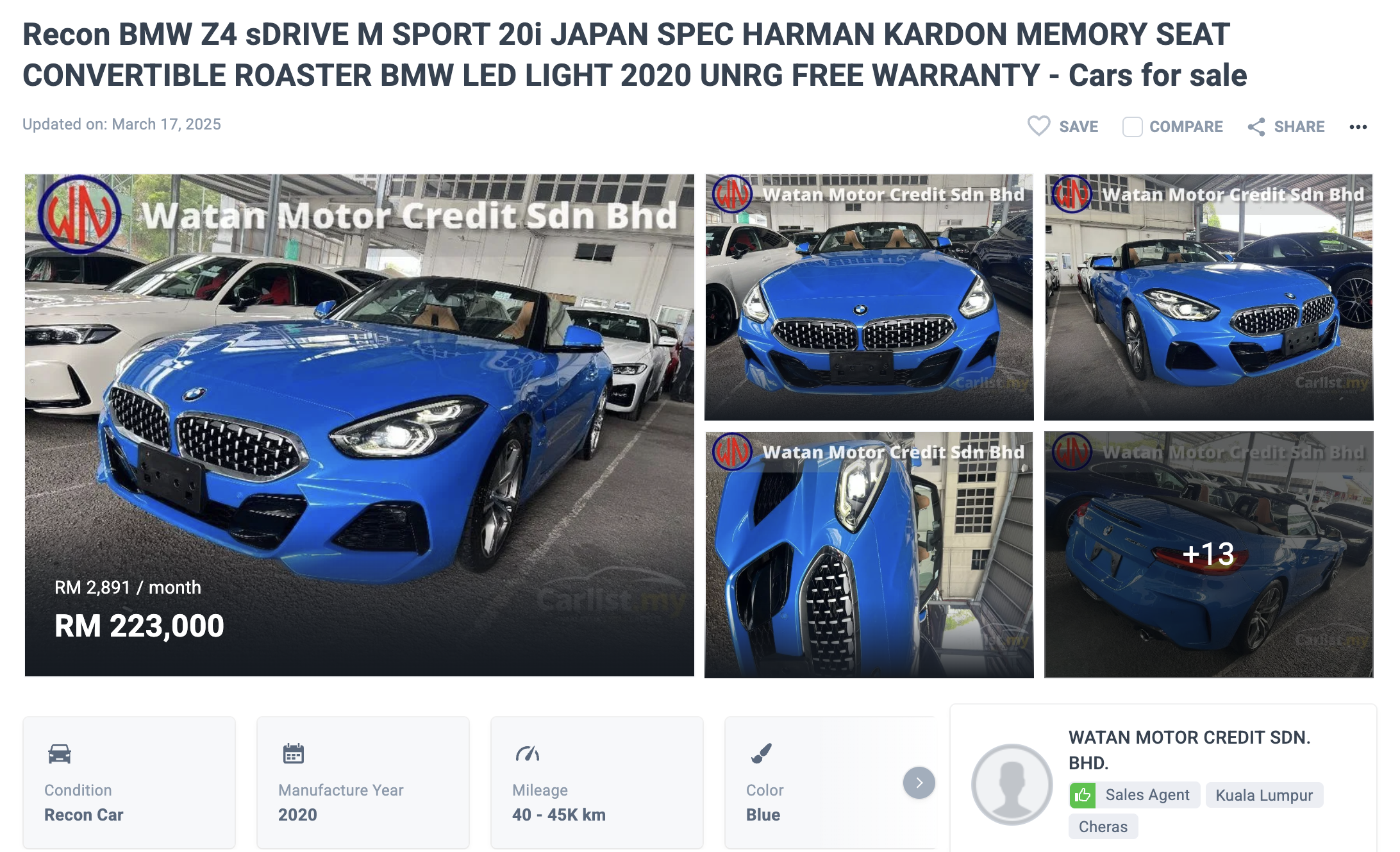 最后,目前二手,年份 2020 的 BMW Z4 sDrive20i 只需大约 RM223,000 就可买到,这价钱确实还蛮值得考虑的,你们怎么看?