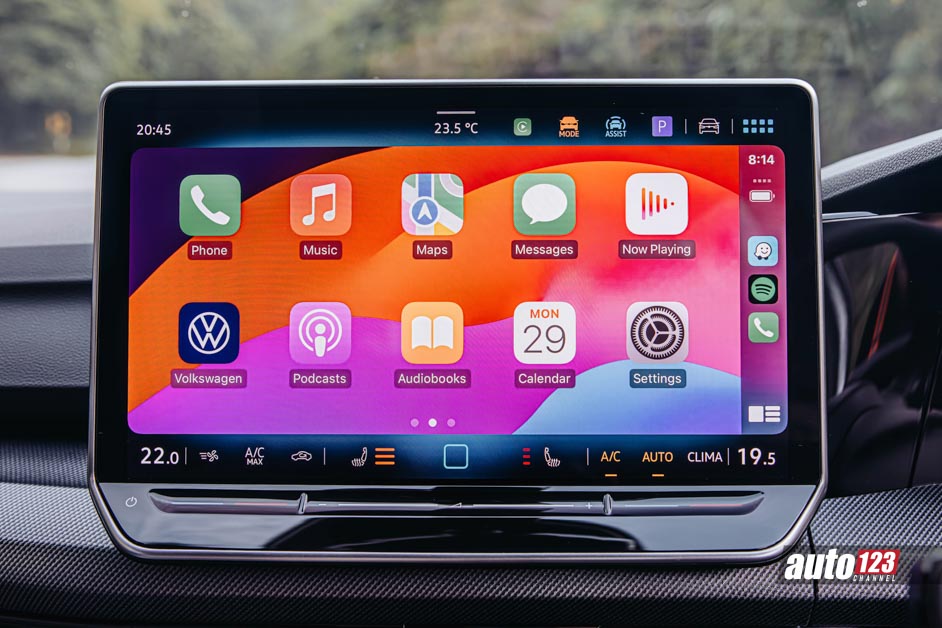 进入车内,Golf R-Line 采用 12.9 寸中控娱乐屏 和 10 寸 Digital Cockpit Pro 全液晶仪表,同时支援 Apple CarPlay / Android Auto,还有抬头显示器和无线充电、氛围灯、倒车镜头。座椅采用 R-Line 专属布料材质,前排头枕还有 “R” 字刺绣。内装风格更帅、更高级!