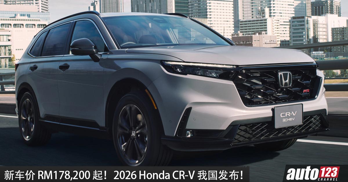新车价RM178,200 起!2026 Honda CR-V 我国发布,2.0L e:HEV混动系统,马力 184 PS,配备更多!