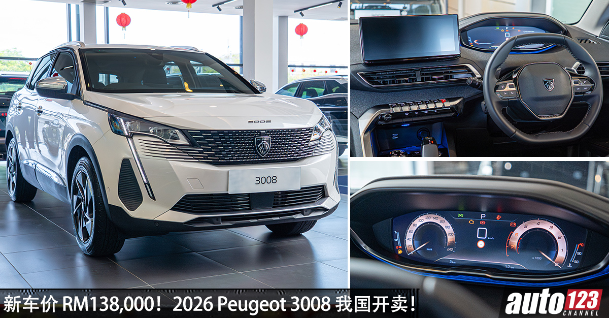 新车价 RM138,000!2026 新款 Peugeot 3008 我国发布,1.6T 引擎,马力165 HP,外观更帅 + 配备更好!