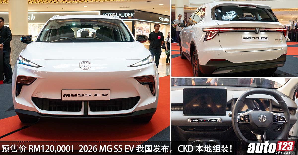 预售价 RM120,000!2026 MG S5 EV 我国发布,CKD 本地组装,马力 204 PS,续航可达 446 KM!