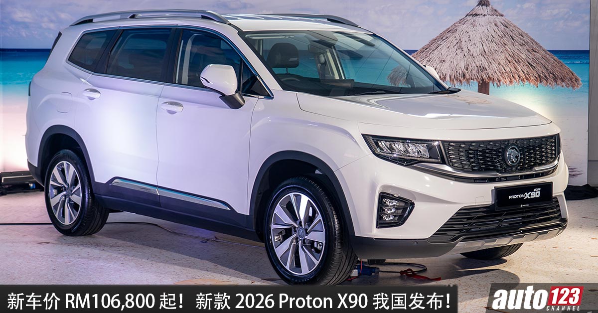 Proton 正式发布 2026 X90,新车改用 1.5L Turbo 四缸引擎,马力比旧款更低(旧款190 PS),外观和旧款相同,内装终于加上无线 Apple CarPlay / Android Auto,新车价从 RM106,800 起,你满意这次的改款吗?