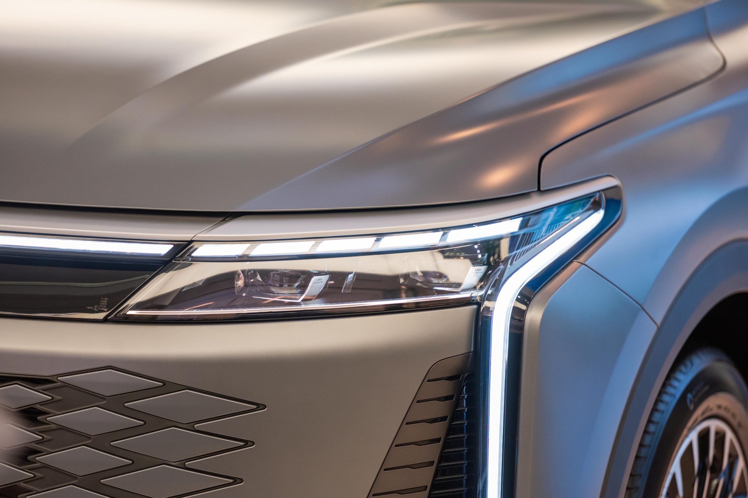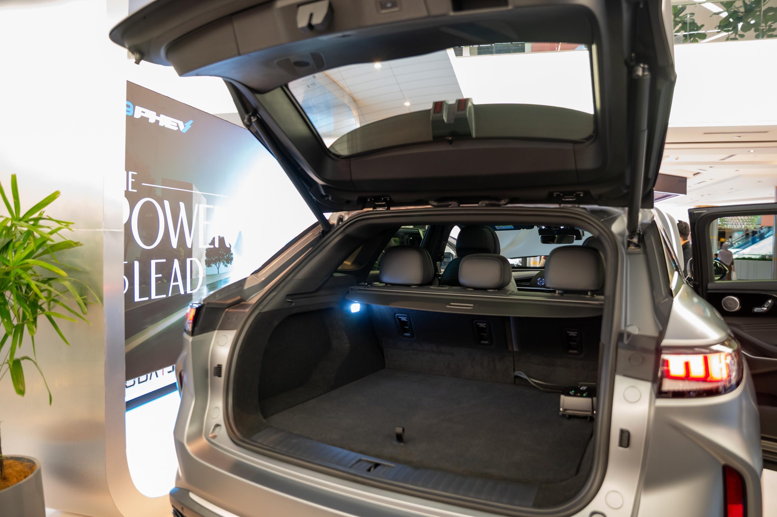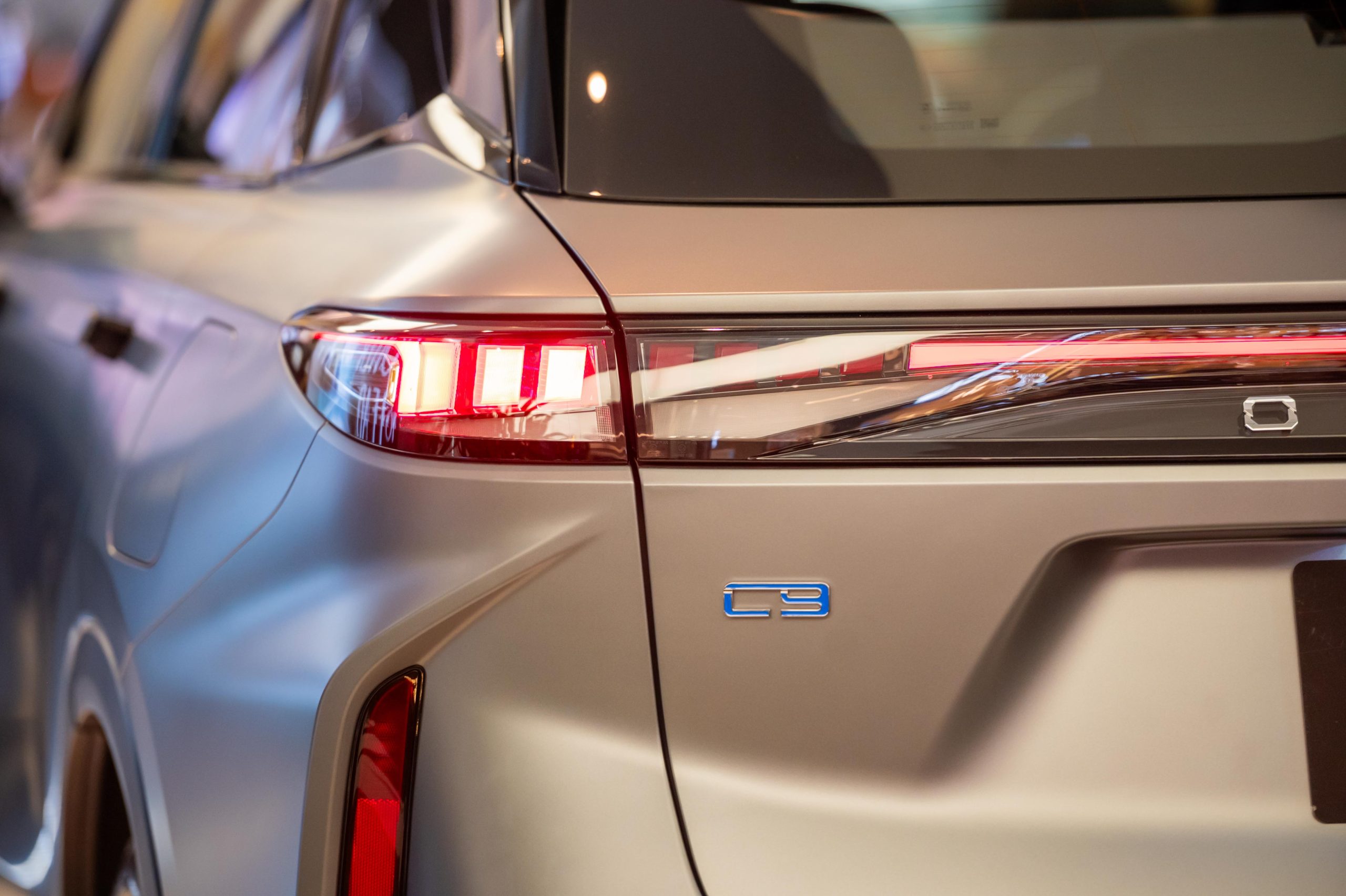 来到外观方面,和 C9 外观基本一致,C9 PHEV 车头采用超大的菱形进气口设计搭配 L Shape 的头灯组。车侧采用 20寸轮圈(Michelin e-Primacy 245/50R2)搭配隐藏式门把、悬浮式车顶,车尾一样采用贯穿式熏黑尾灯和双边双出排气设计,整体外观很有未来感,尤其是车头非常锐利(晚上看真的超帅)。车身尺寸方面,长 4,775 mm、宽 1,920 mm、高 1,671 mm,轴距达到 2,800 mm,保证了 D-Segment SUV 气场和空间表现。