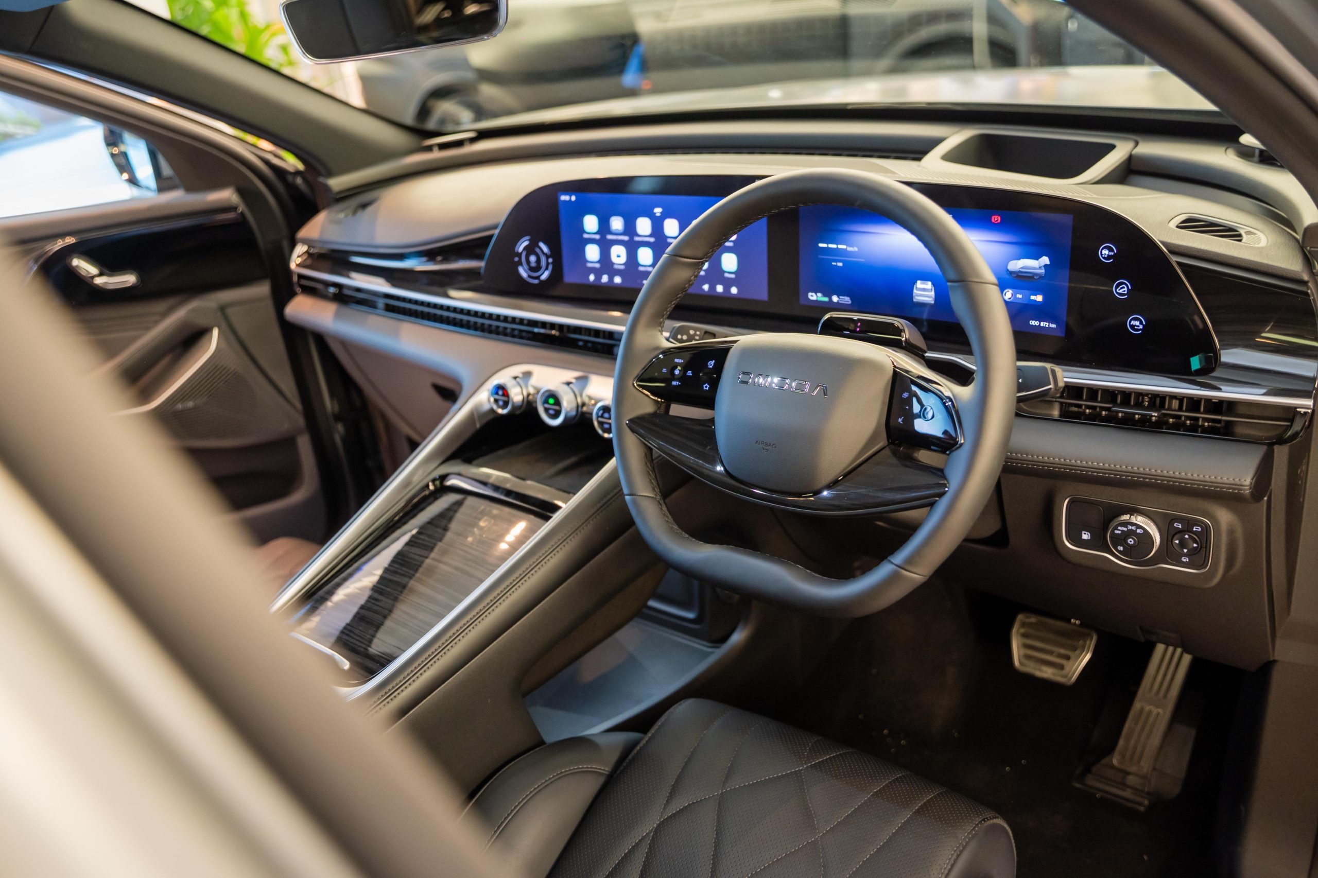 进入车内,C9 PHEV 配备超过 24 寸的双连屏(支援 Wireless AppleCarplay + Android Auto)、全液晶仪表、HUD 抬头显示器,50W 无线充电,此外还采用真皮材质的电动记忆座椅,其他包括 Sony 高级音响、氛围灯点缀,整体内装非常豪华~ 安全方面,提供完整的 L2 ADAS 安全辅助系统, 还有 540 度摄像,DVR 功能,8个安全气囊,用车更安心。