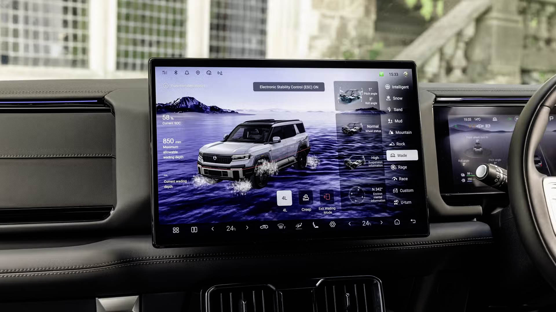 进到车内,B8 配备 12.3寸的仪表盘、17.3寸的超大娱乐触控屏、抬头显示器、电子换挡杆,其他配备还包括双 50W 无线充电、扶手箱储物空间(有加热、制冷功能)、前排电动座椅还有加热、通风和按摩功能。整体采用豪华风格、科技感也很强。