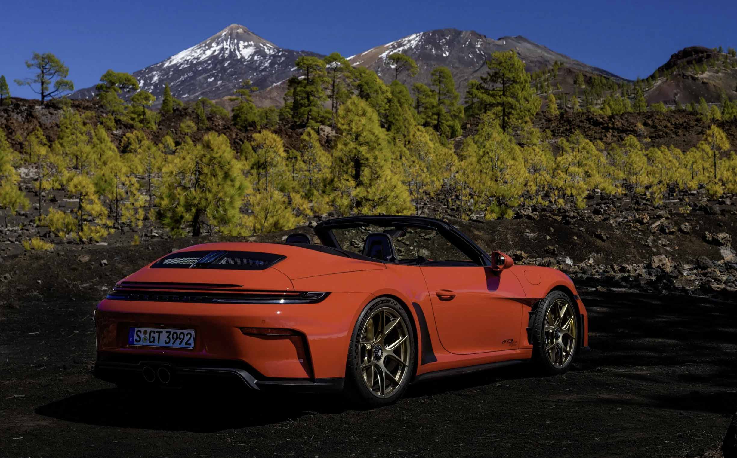 底盘部分,GT3 S/C 也一样用了和 GT3 的设定,包括双叉臂前悬架与后轮转向系统,操控表现更舒服、更轻松。缺点是,因为敞篷结构会让它更重,所以它标配碳陶瓷刹车(PCCB)、镁合金轮圈以及更多轻量化部件,整车重量约 1497KG,比 GT3 重了 28KG。但整体上来说,基本就是 GT3 的操控水准,还有开篷乐趣。
