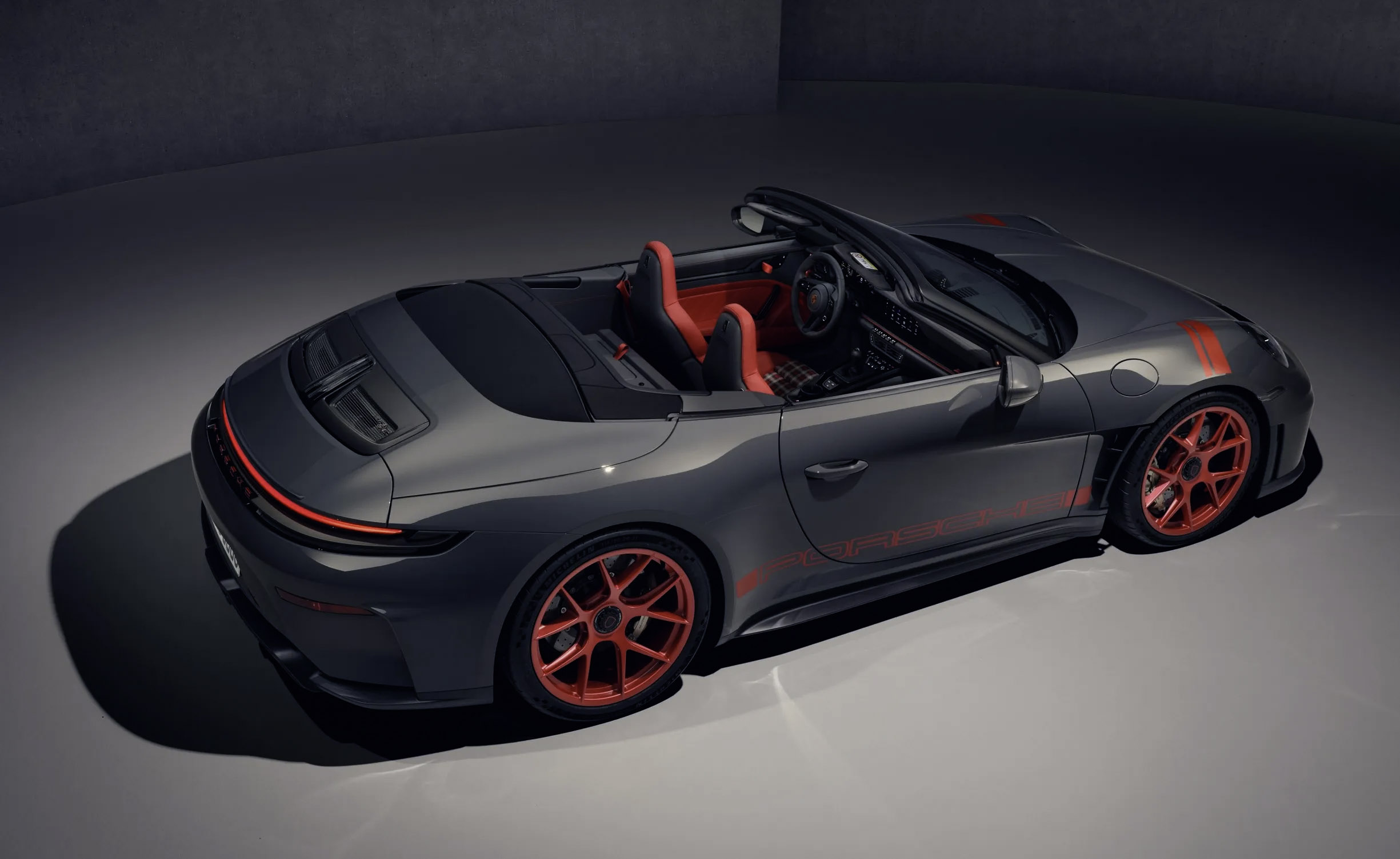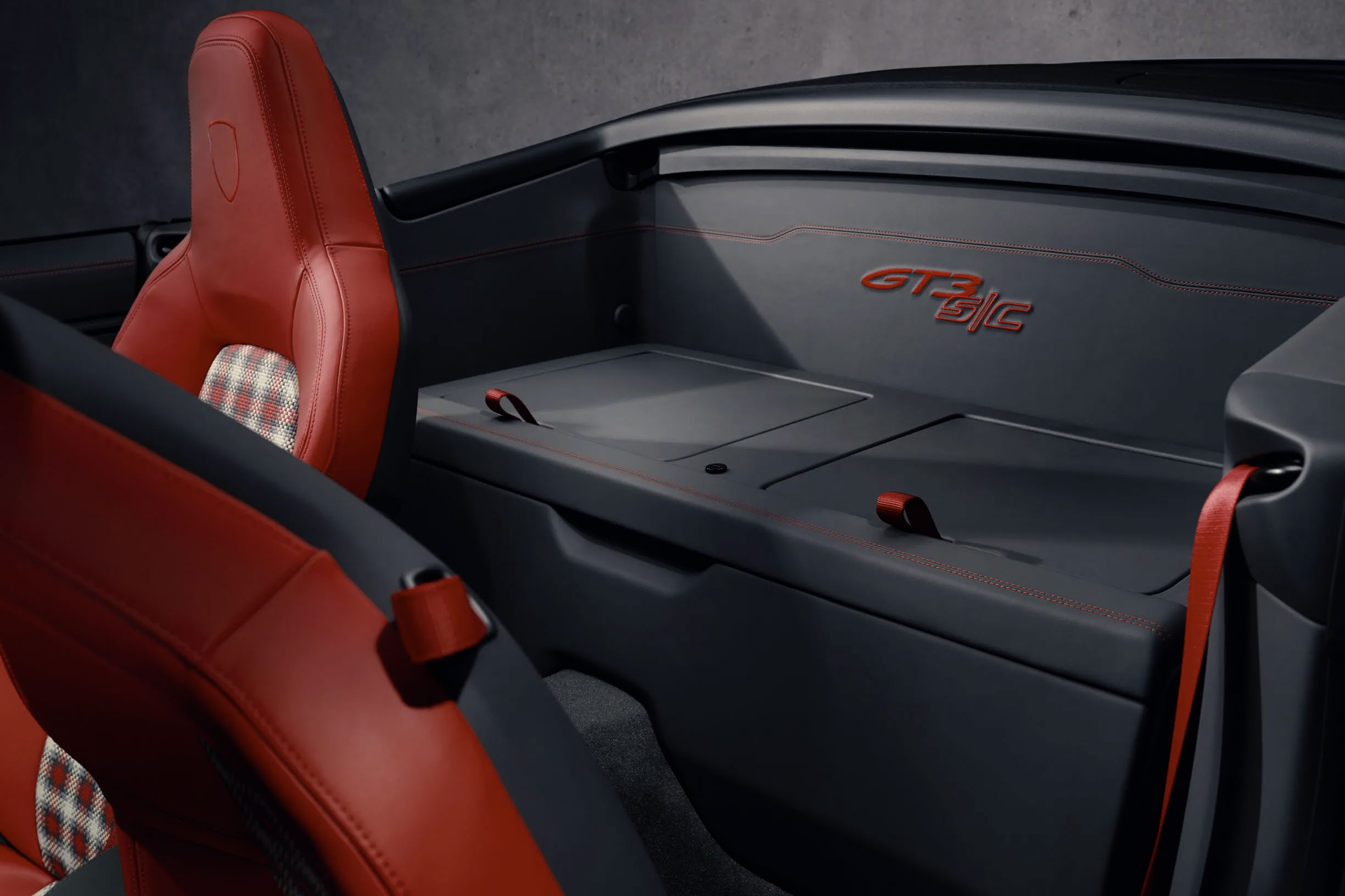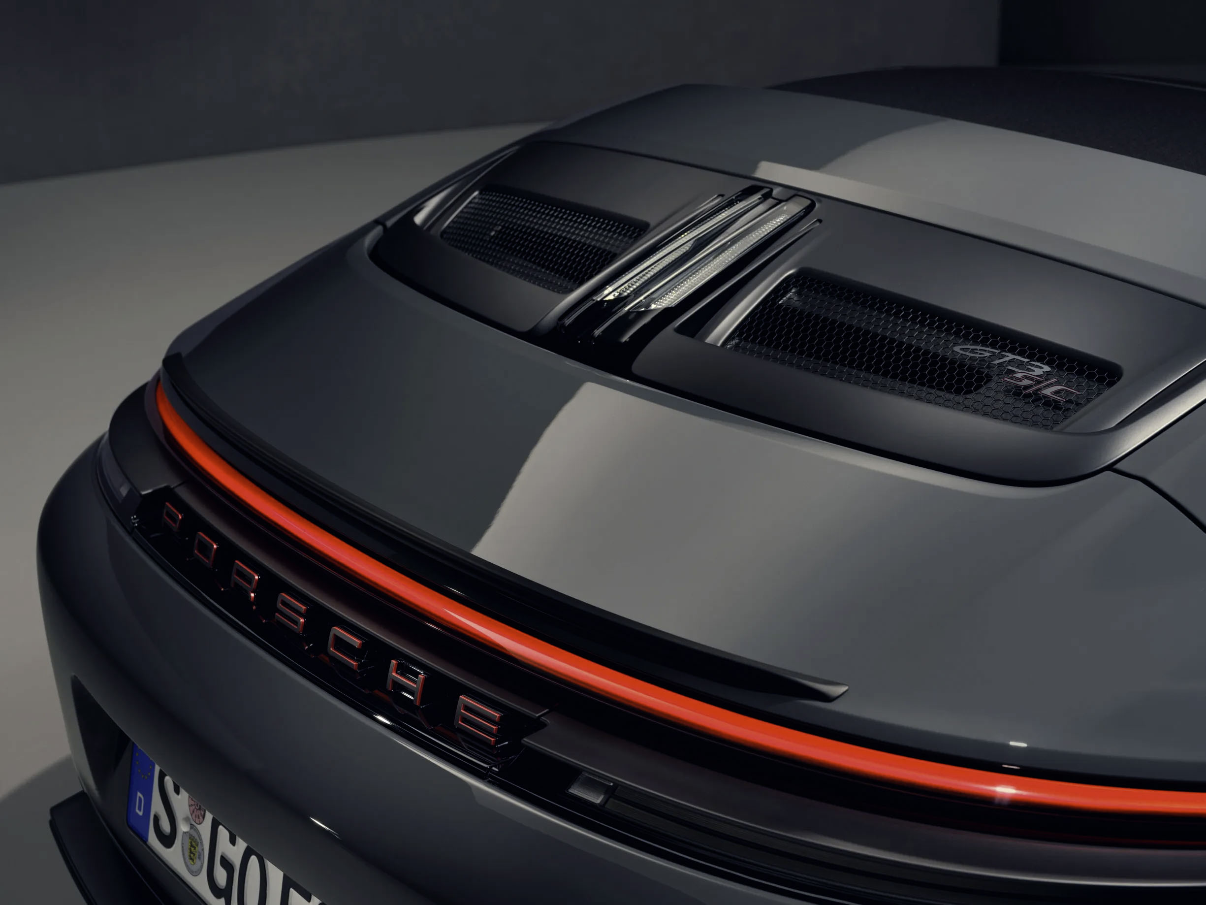 外观方面,GT3 S/C 融合了 GT3 RS 和 Speedster 的设计元素,整体线条更流畅。车身采用大量 Carbon Fiber 碳纤维材质打造,包括前翼子板、引擎盖与车门,同时取消固定式尾翼,换来更干净的车尾造型。此外,它配备电动软顶敞篷机构,比传统 Speedster 的手动顶更实用,再加上 20/21 寸镁合金轮圈、宽体轮拱、GT3 Touring 风格尾部设计,真的够帅(小编对它买单)。