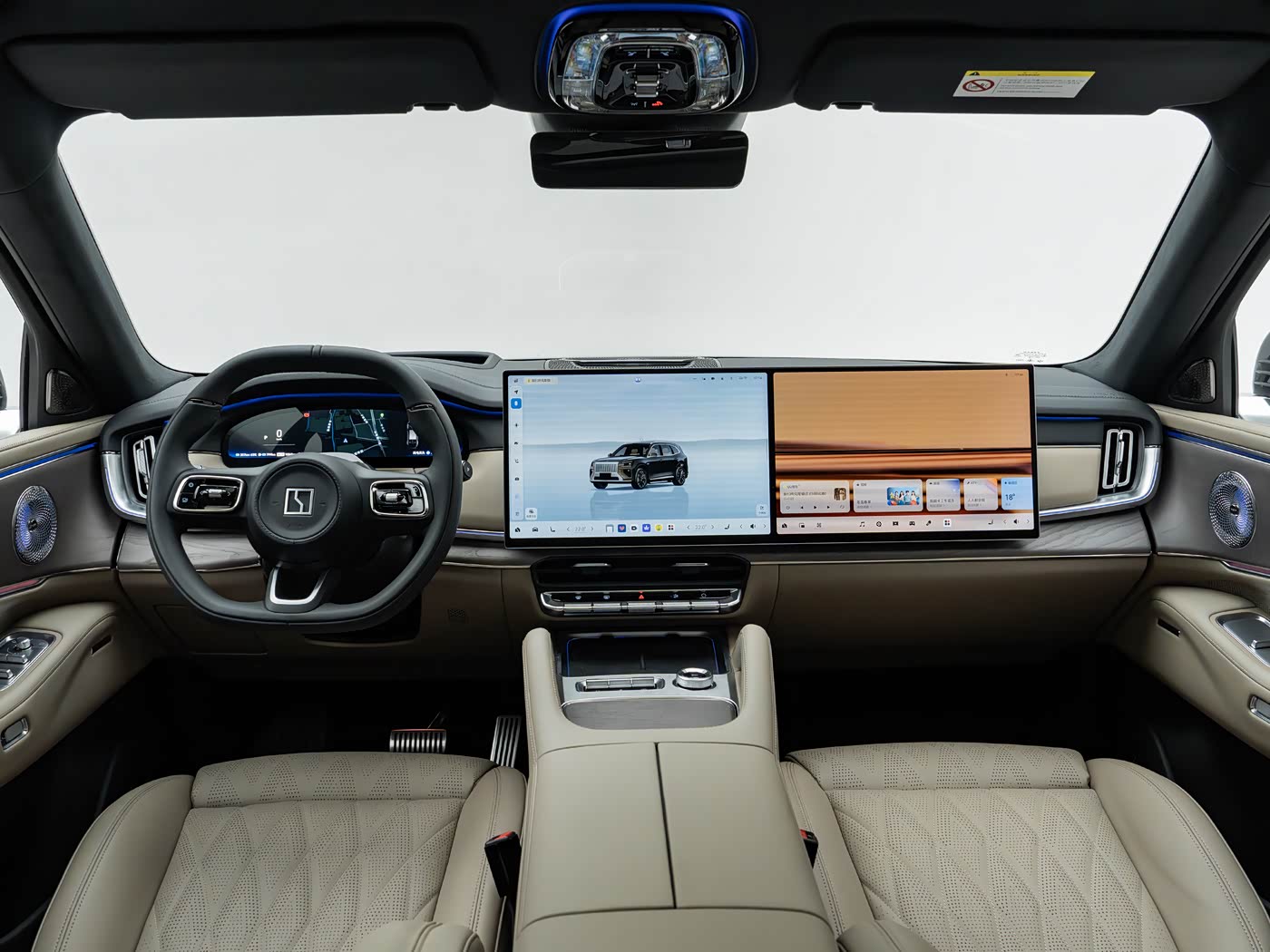 进到车内,才是它的豪华之处,8X 会有5人座和6人座,全车用上真木饰板来点缀。8X 搭载超大的16寸中控屏,(顶配是 16寸主副驾双联屏),第二排还有提供 8寸多功能智慧屏(高配是用17寸吸顶屏)。同时还有高级的 29扬声器 ZEEKR SOUND MAX音响系统,其他包括电动躺椅(零重力、电动脚踏、按摩、记忆、加热、通风功能)、电动遮阳帘、冰箱等豪华设备。内装真的非常豪华。