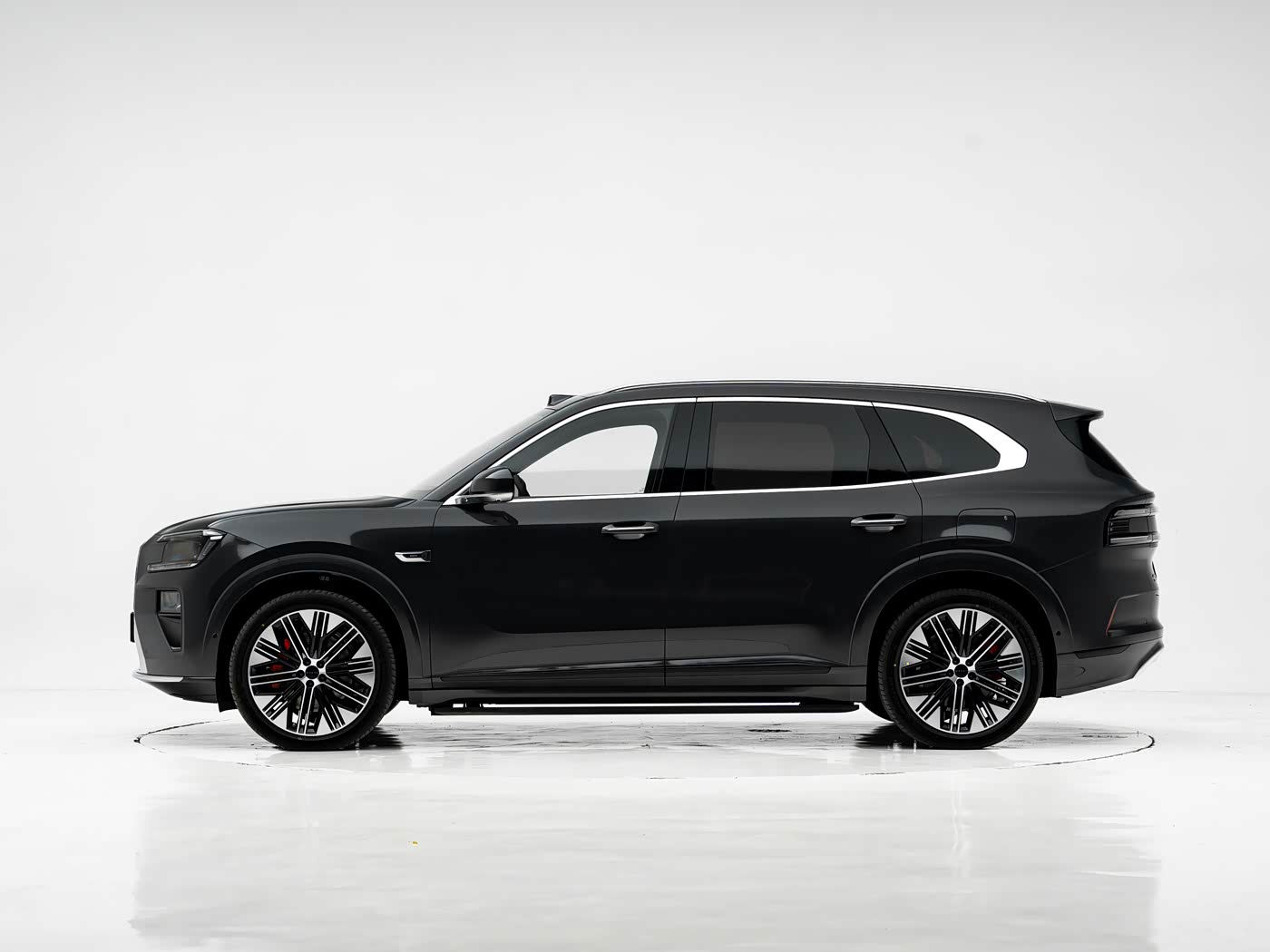 首先,在外观上 8x 和哥哥类似但稍微不同,车头一样有一体式直瀑格栅,底部格栅加宽、两侧有凹陷导风槽(减少乱流),同时它也压低视觉重心,让车头看上去更完整。同时还有分体式大灯(星钻矩阵造型)、C型日行灯,车顶还有激光雷达(看清周围环境)、车侧搭配的是传统式门把、20寸(21、22寸)的大轮圈。车尾则是贯穿尾灯搭配两侧的横条日行灯,较为简洁。它不走“库里南风”,而是采用更 Sporty 的宽体+低趴风格。
