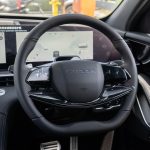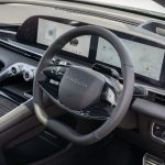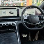 来到内装,超过 24 寸的双连屏视觉感超级好,娱乐主机支援 Wireless AppleCarplay + Android Auto,匹配 Sony 高级音响,加上氛围灯点缀,体验确实高分。此外,Omoda C9 也有新的方向盘设计,全液晶仪表,HUD 抬头显示器,50W Wireless Charging 无线充电,带记忆功能的电动真皮座椅等等,内装的配备来说,真的是没有什么好嫌弃了。。。